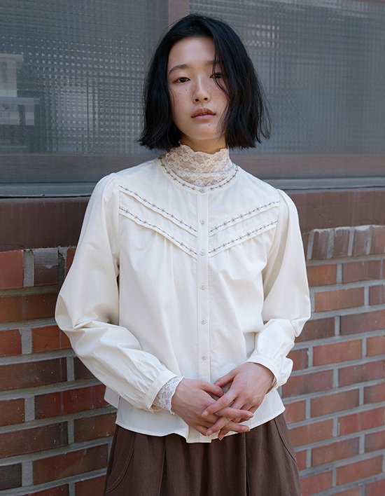 [써스데이 아일랜드][KiiiKiii 착용] 플라워 자수 포인트 블라우스_T256MB165