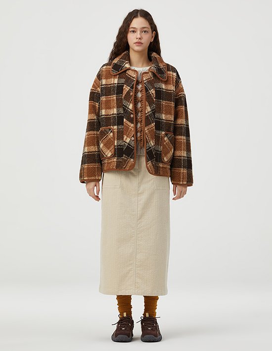 [써스데이 아일랜드] 멀티 체크 페이크 퍼 자켓_T258MLT941W