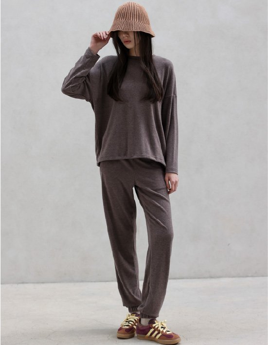 [em] E17 코지 조거 팬츠_멜란지 브라운