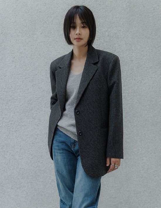 [메무아] 헤리티지 체크 오버핏 울자켓