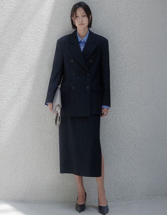 [메무아] 핀ST 와이드 더블브레스트 스커트 셋업