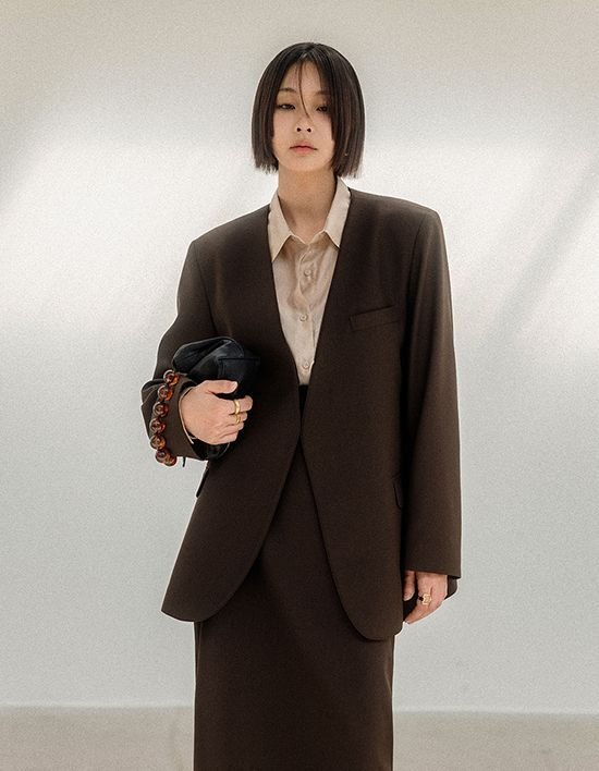 [메무아] 미니멀 노카라 자켓