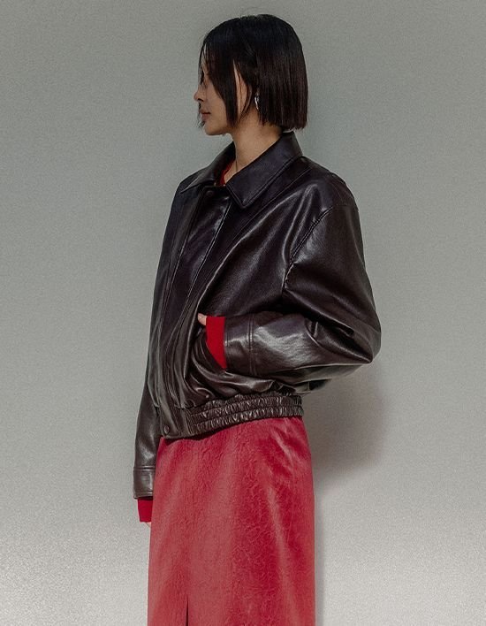 [메무아] 포쉬 컷라인 레더 점퍼(브라운)
