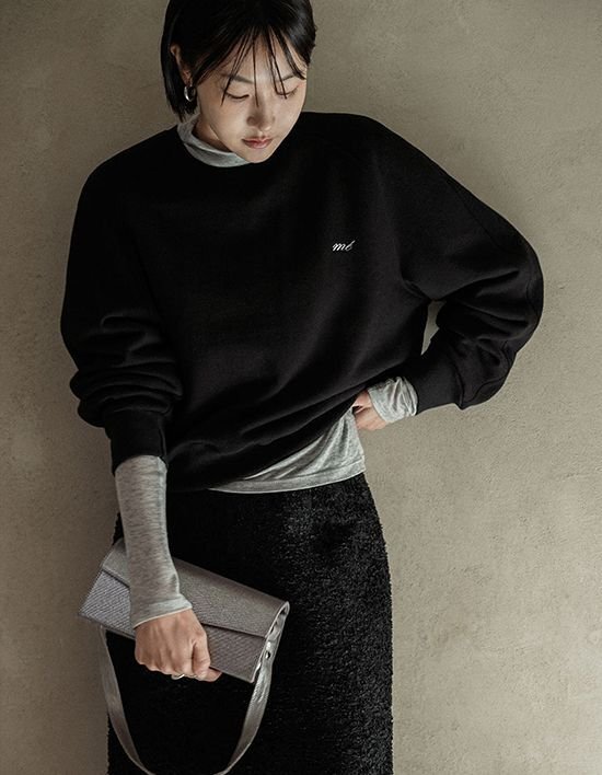 [메무아] 시그널 헤비쭈리 자수 맨투맨(블랙)