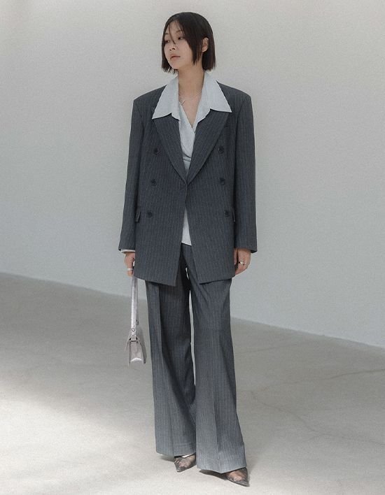 [메무아] 핀ST 와이드 더블브레스트 와이드 트라우저 셋업(그레이)