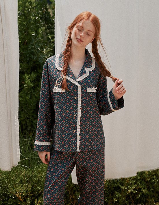 [울랄라 파자마] 앤의 동백꽃 긴팔 여성페어 네이비 (30수) FREE