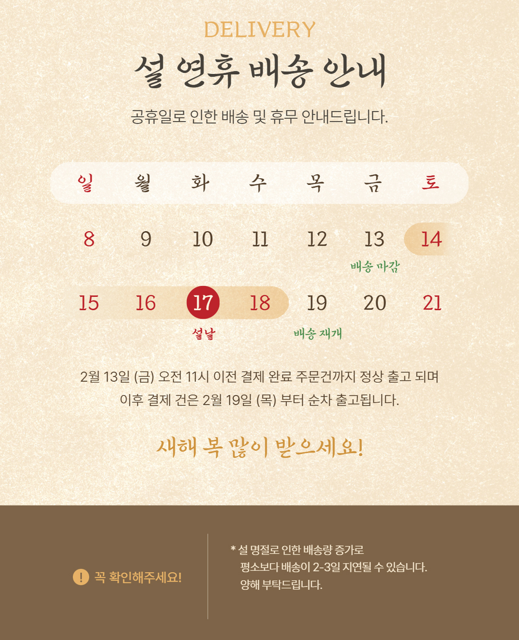 배송 과정 중 기상 악화 및 도로교통 상황에 따라 부득이하게 지연 배송이 발생될 수 있습니다.