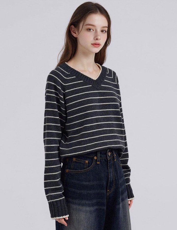 [부루앤쥬디] ST배색브이넥니트 BORKPO509A 4color (택1)