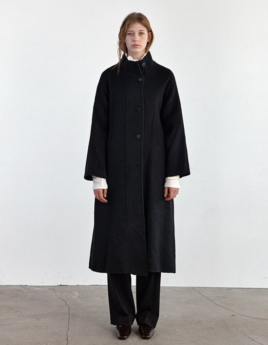 [드팜므] 울 하이넥 핸드메이드 롱코트 블랙