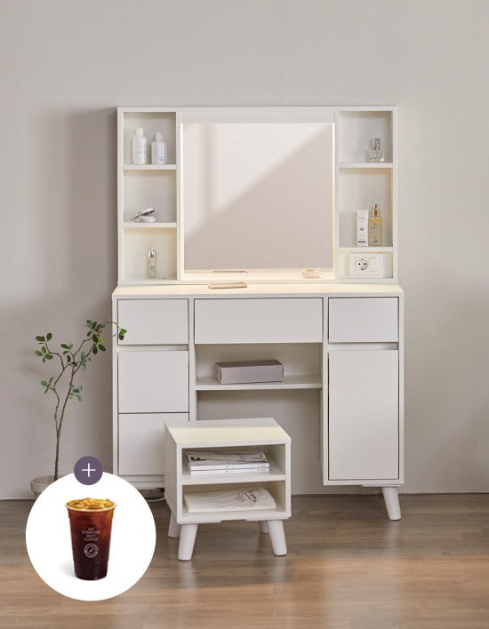 [리샘] 데일리 LED 수납 서랍 화장대세트(스툴포함)