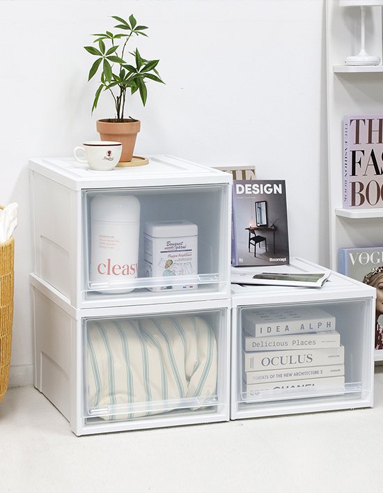 적층이 가능하여 내가 원하는 단수에 맞춰 적재가 가능한 수납함