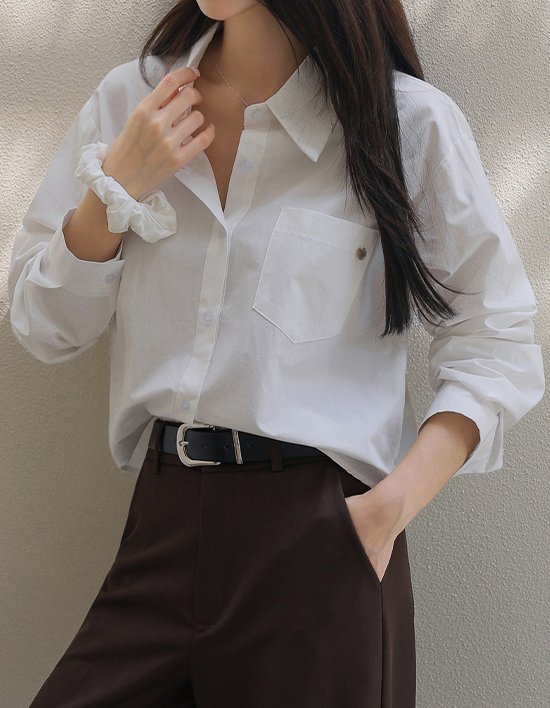 [프렌치시크] 쉘포켓 스크런치SET 코튼 셔츠_53SH799