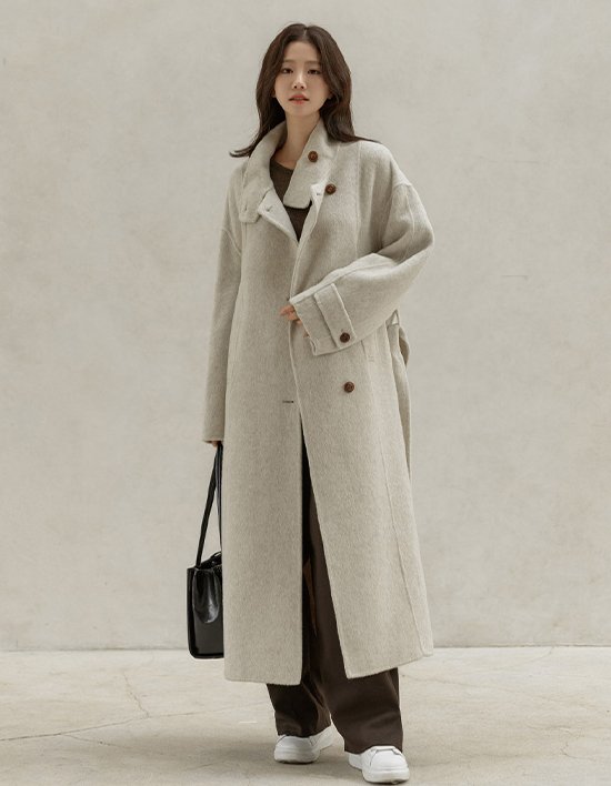 [프렌치시크] 살리번 핸드메이드 하이넥 롱 코트