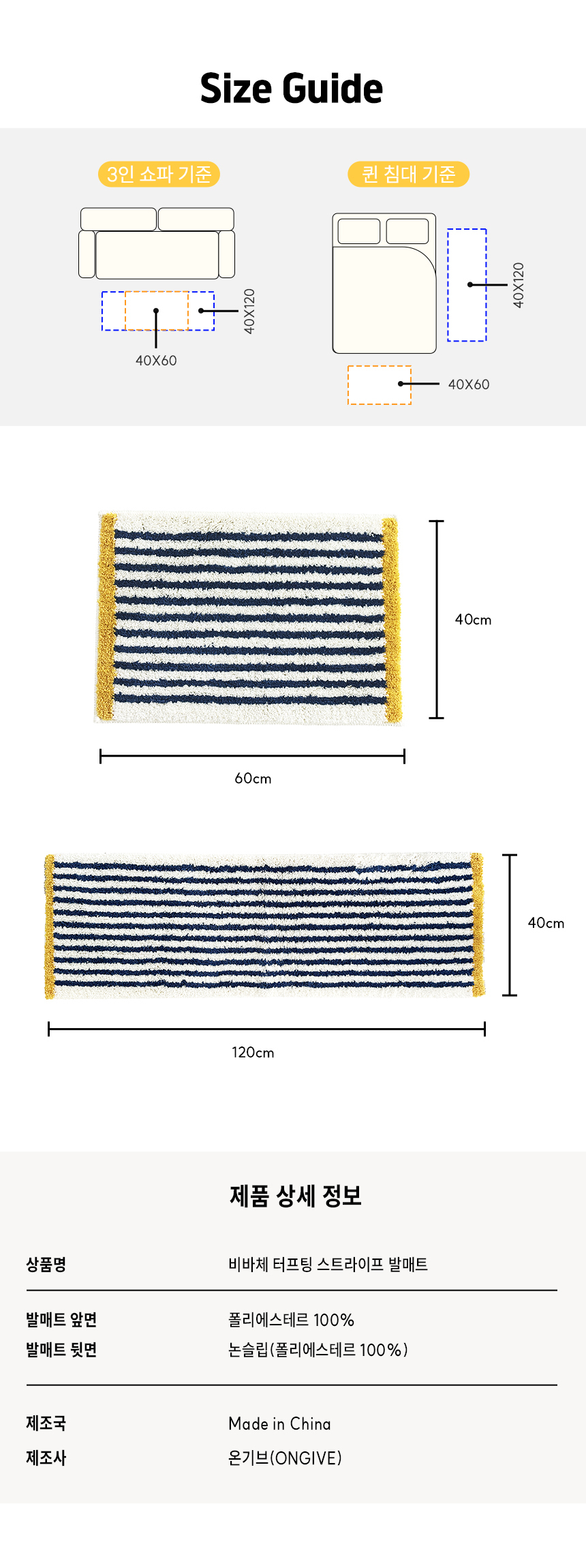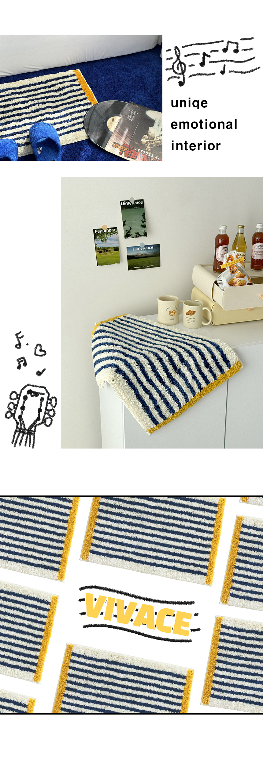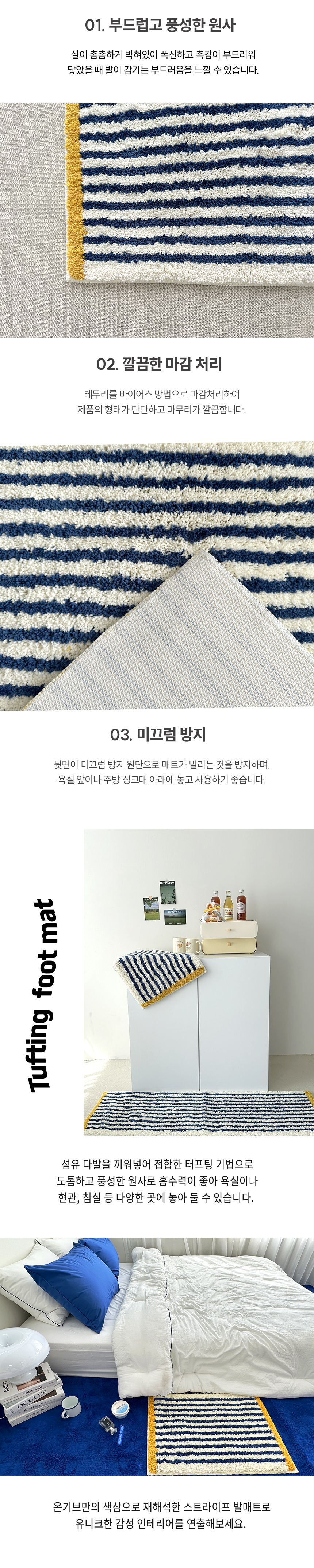 [온기브] 비바체 터프팅 스트라이프 발매트 2size (택1)