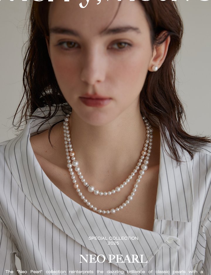 [메리모티브] 애프리콧 듀얼 진주 목걸이