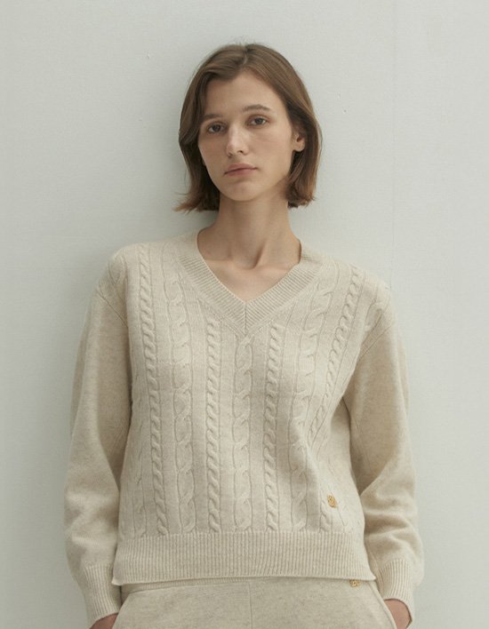[소에타에르]캐시미어100% 사라 케이블 풀오버_SKW231002