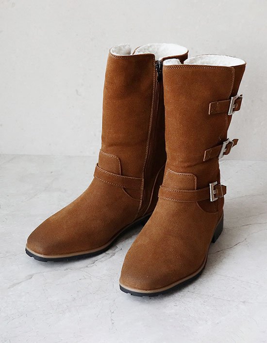 [원더슈즈] 천연소가죽 레오나 발편한 가벼운 쿠션 기모 안감 미들 롱 부츠 3CM