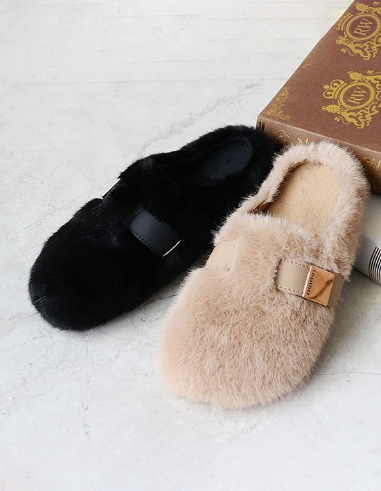 [원더슈즈] 래빗트 컴포트 쿠션 미끄럼방지 따뜻한 기모 뮬 슬리퍼 3CM MR-163