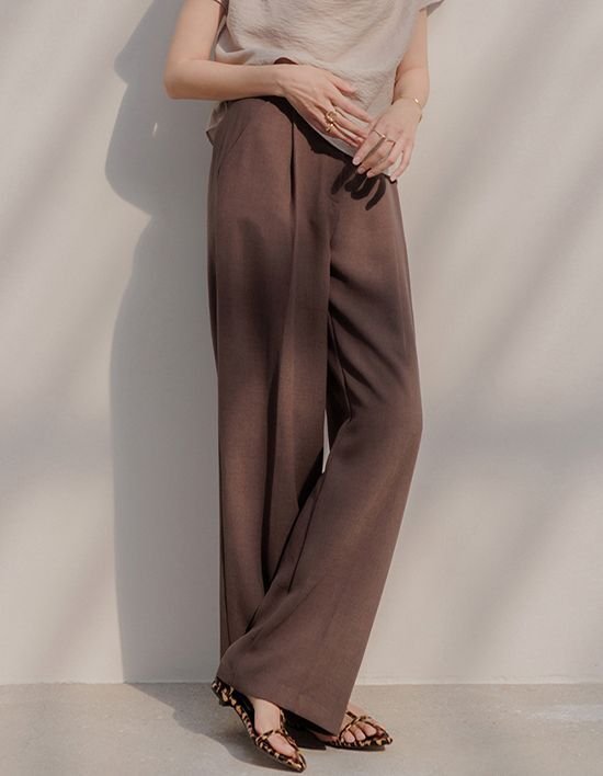 [메무아] 웨이브 원턱 세미와이드 슬랙스(카키브라운)