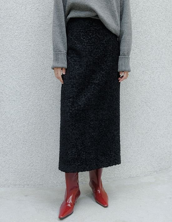 [메무아] 벨리나 자가드 레이스 미디 스커트(블랙)