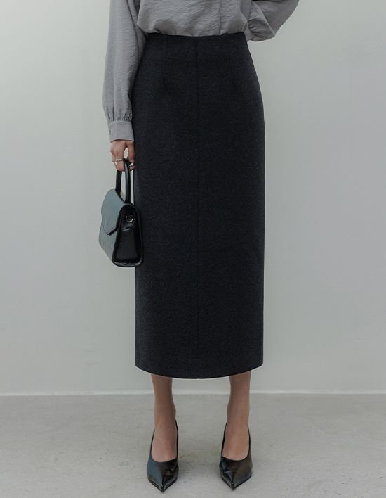 [메무아] 씨엘로 울 미디 스커트(차콜)