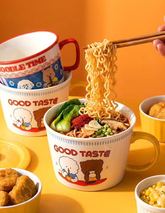 용량 up! 전자레인지 사용이 가능한 사랑스러운 비숑&푸들 디자인 라면그릇
