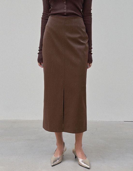 [메무아] 벨루떼 레더 롱미디 스커트(브라운)