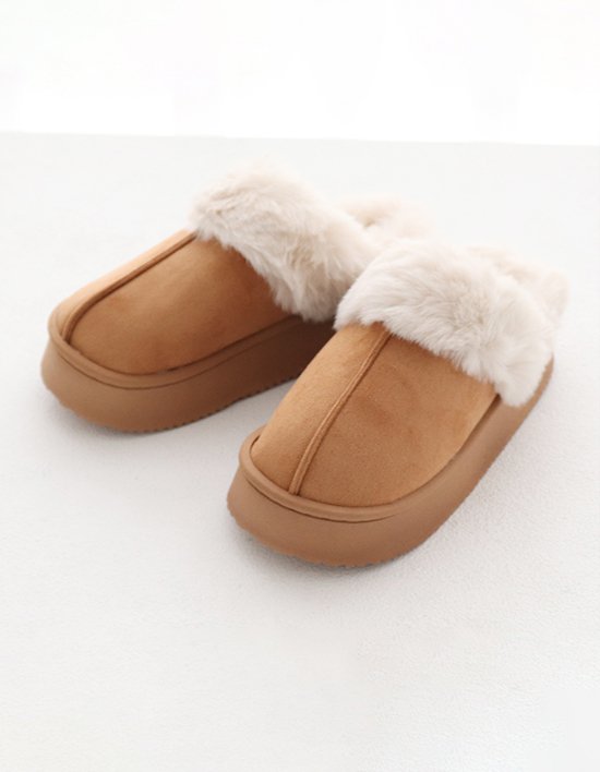 [원더슈즈] (1+1)따수워 발편한 가벼운 쿠션 통굽 어그 털 슬리퍼 4CM