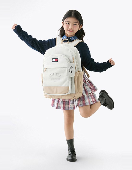큼직한 사이즈와 가벼운 무게감으로 학용품부터 일상 소품까지 넉넉하게 수납하기 용이한 100% 폴리에스터 소재의 키즈 백팩입니다.<br>통기성이