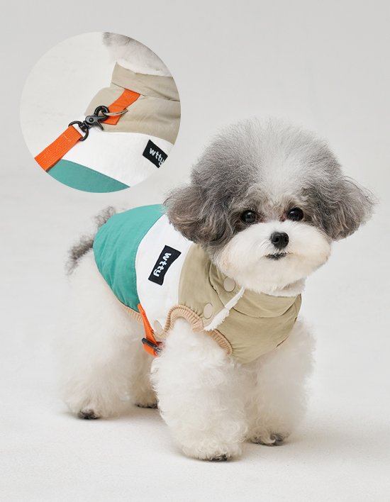 [위드토리] 슈팅스타 강아지 패딩 하네스 (베이지&그린)