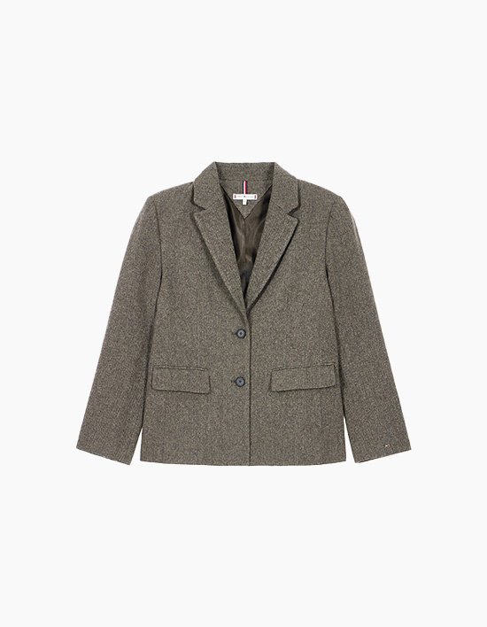 Fit 슬림 핏<br>도톰한 울 혼방 소재로 따뜻하면서도 슬림한 실루엣을 연출하는 헤링본 패턴 재킷입니다.<br>투 버튼 블레이저 디자
