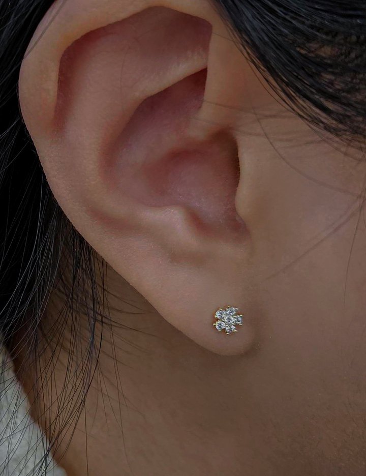 [엘렌쥬얼리]14K 세이 플라워 큐빅 금 귀걸이