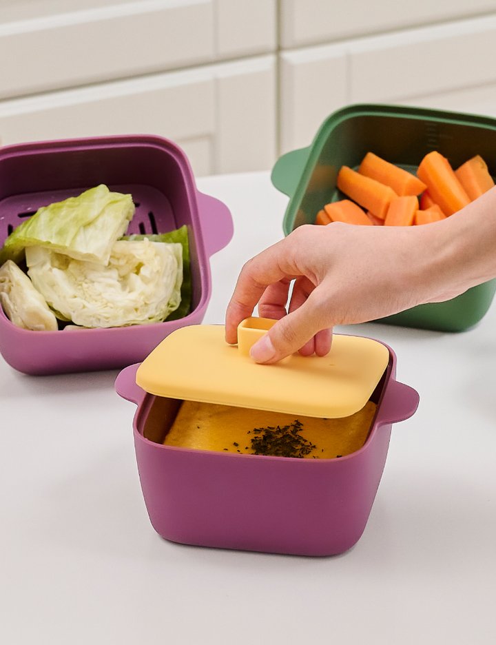 [르메이드] 한끼완성 전자레인지 실리콘 사각 멀티 찜기 대용량 1,200ml 2종(택1)