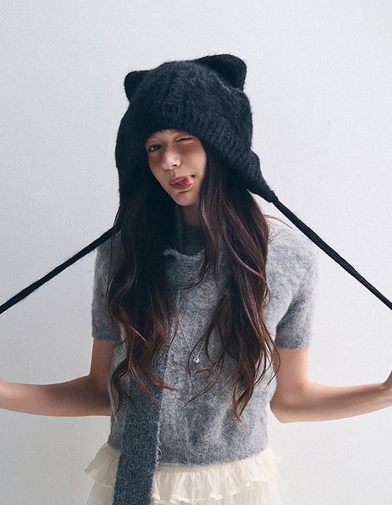 [다나버튼] 래빗 퍼 무드팝 캣햇 (3 Colors)