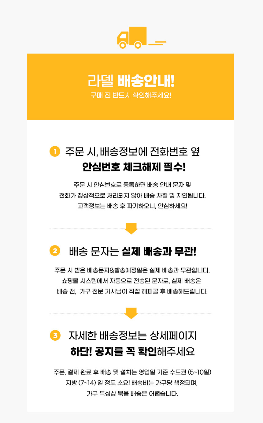 배송 과정 중 기상 악화 및 도로교통 상황에 따라 부득이하게 지연 배송이 발생될 수 있습니다.