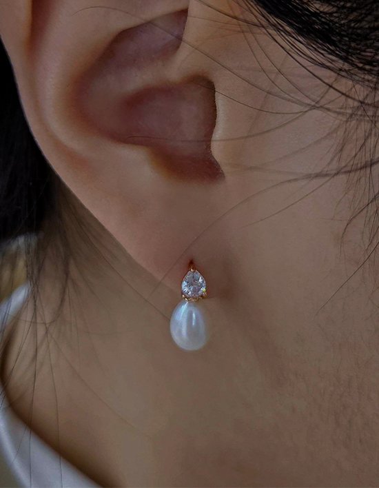 [엘렌쥬얼리]14K 물방울 큐빅 담수 진주 귀걸이