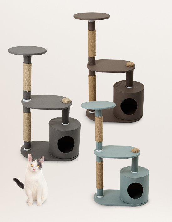 [펫토리아] 한층뚝딱 고양이 원목 방수원단 3단 원형 캣타워 105cm