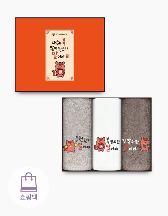 [송월] 2026 설 자수 붉은 말이야 호텔수건 3매 신년 선물세트