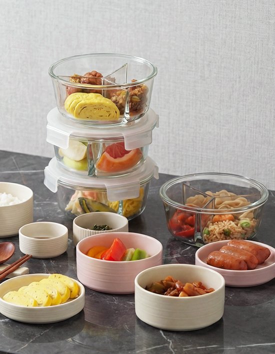 전자레인지,오븐,냉동실 ok! l 깔끔하고 보관이 편안한 칸막이 유리 반찬용기