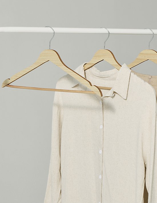 깔끔한 우드톤으로 옷장을 정돈해주는 옷걸이