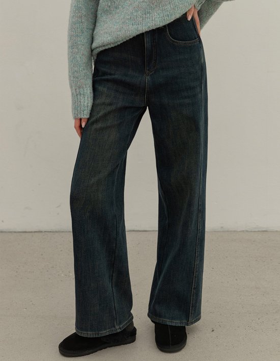 [논앤논] 냅핑 와이드 레그 인시전 데님 팬츠(딥블루)