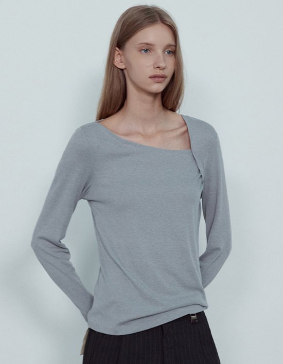 [논앤논] 언발넥 슬림 티셔츠_NFTS5275 2color(택1)