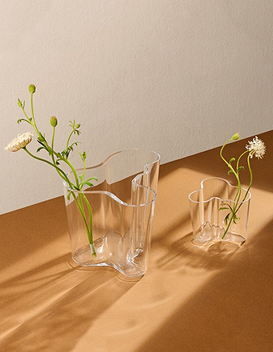 알토 화병은 1936년 파리 세계박람회에서 처음 선보인 후 이듬해에 제품으로 출시되었습니다. 알토 화병의 유기적이고 유려한 곡선 형태는 오늘날까지도 여전히 이딸라 유리 공장에서 입으로 직접 유리를 불어서 만들어 집니다.