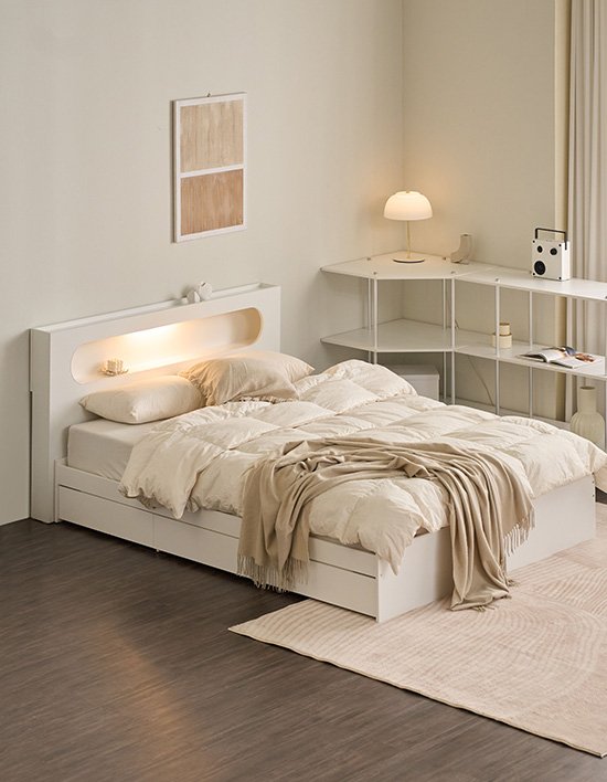 많은 기능을 한번에 효율적으로- 올인원 조명 수납 침대
