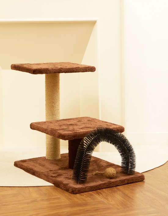 [펫토리아]고양이 원목 그루밍 브러쉬 3단 소형 캣타워 50cm