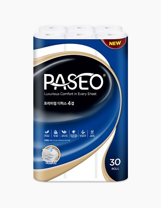 [파세오] 4겹 프리미엄 디럭스 화장지 25M X 30롤 (98mm)