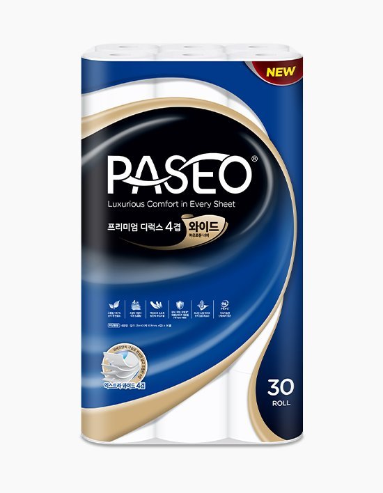 [파세오] 4겹 프리미엄 디럭스 화장지 25M X 30롤 (107mm)