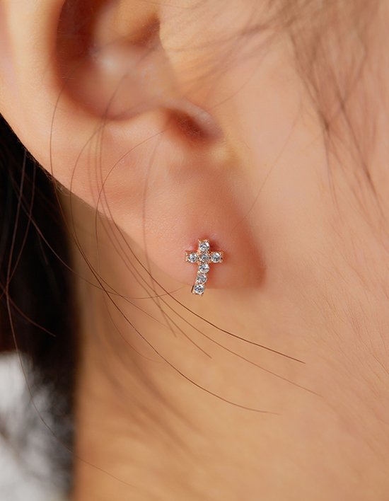 [엘렌쥬얼리]14K 타이니 크로스 십자가 큐빅 귀걸이