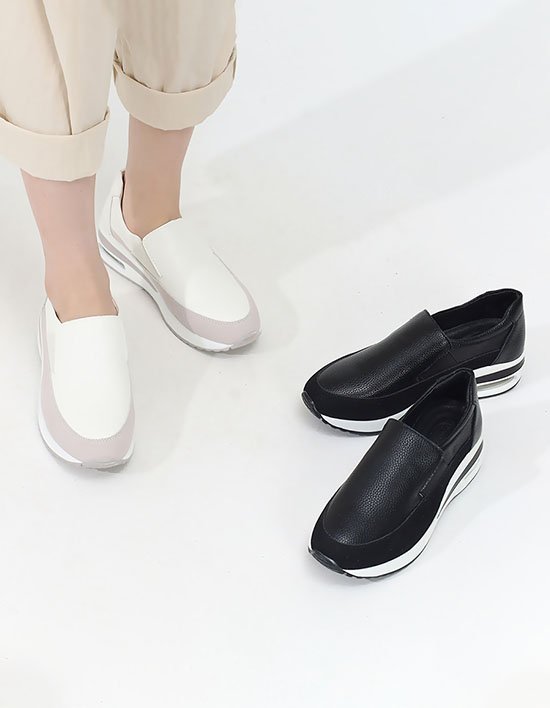[원더슈즈] 천연소가죽 데일러 발편한 가벼운 쿠션 에어 슬립온 스니커즈 운동화 3CM