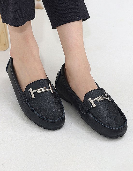 [원더슈즈] (빅사이즈)천연소가죽 줄리엣 발편한 가벼운 쿠션 밴딩 로퍼&단화 1.5CM